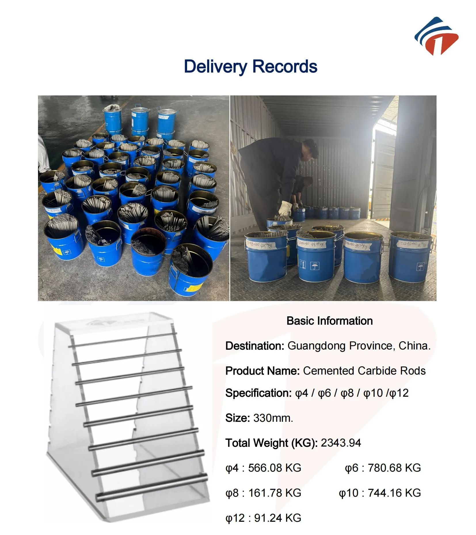 Стрижні з карбіду вольфраму вагою 2349 кг доставляються до Гуандуну.